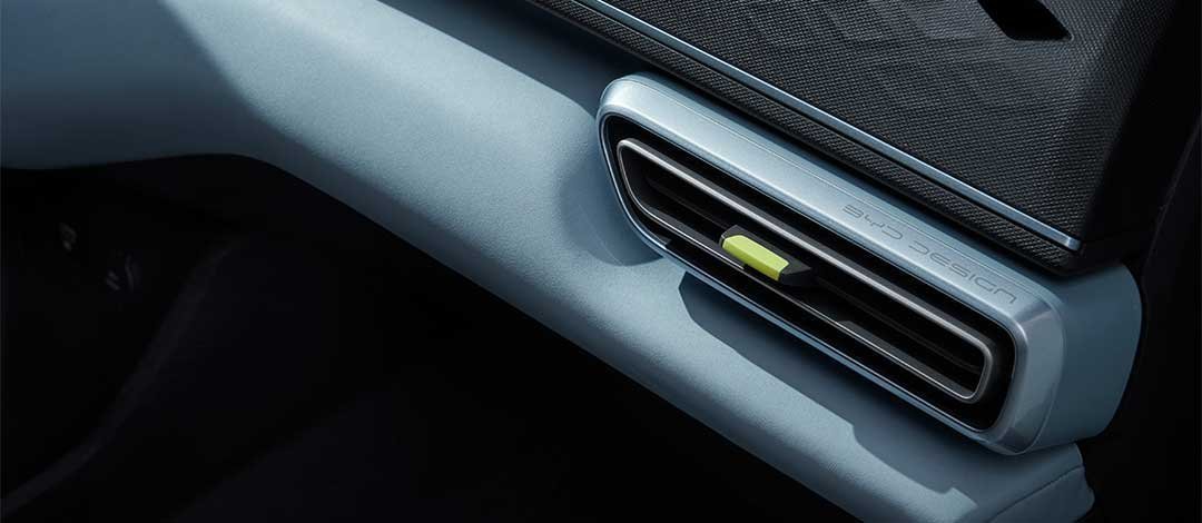 Ventilasi AC BYD Atto 1 hadir dengan sentuhan desain bergaya cyberpunk, menampilkan garis tegas yang berpadu dengan aksen warna modern nan memikat. Gaya futuristik ini tidak hanya menghadirkan nuansa energik di dalam kabin, tetapi juga menegaskan karakter inovatif dan berjiwa muda dari BYD Atto 1.