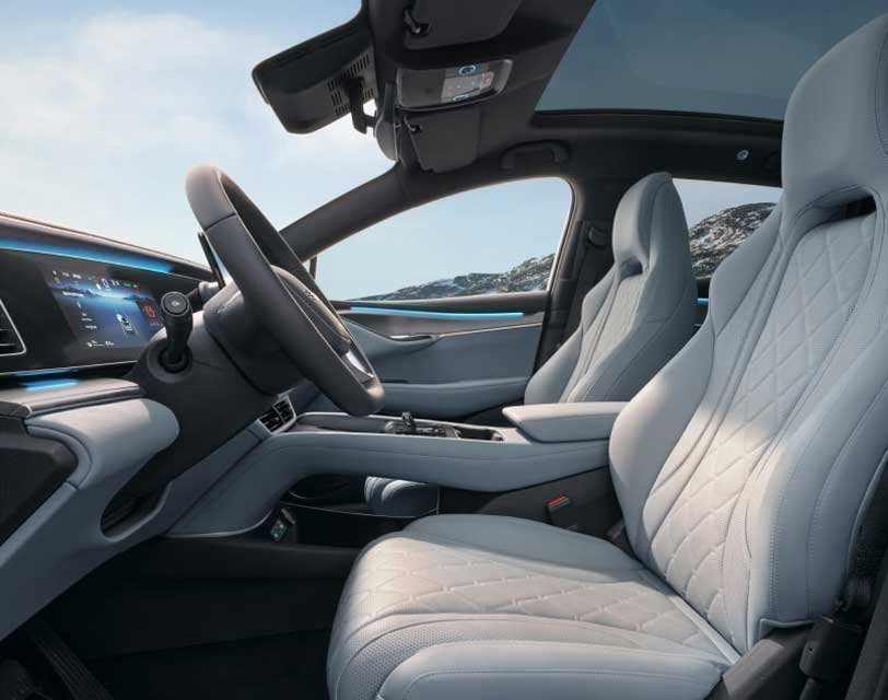 Rasakan kenyamanan premium melalui jok Nappa bertekstur quilted yang dibuat dari lebih dari 80% vegan leather lembut, menciptakan sentuhan mewah, elegan, dan berkelas di interior BYD Sealion 7